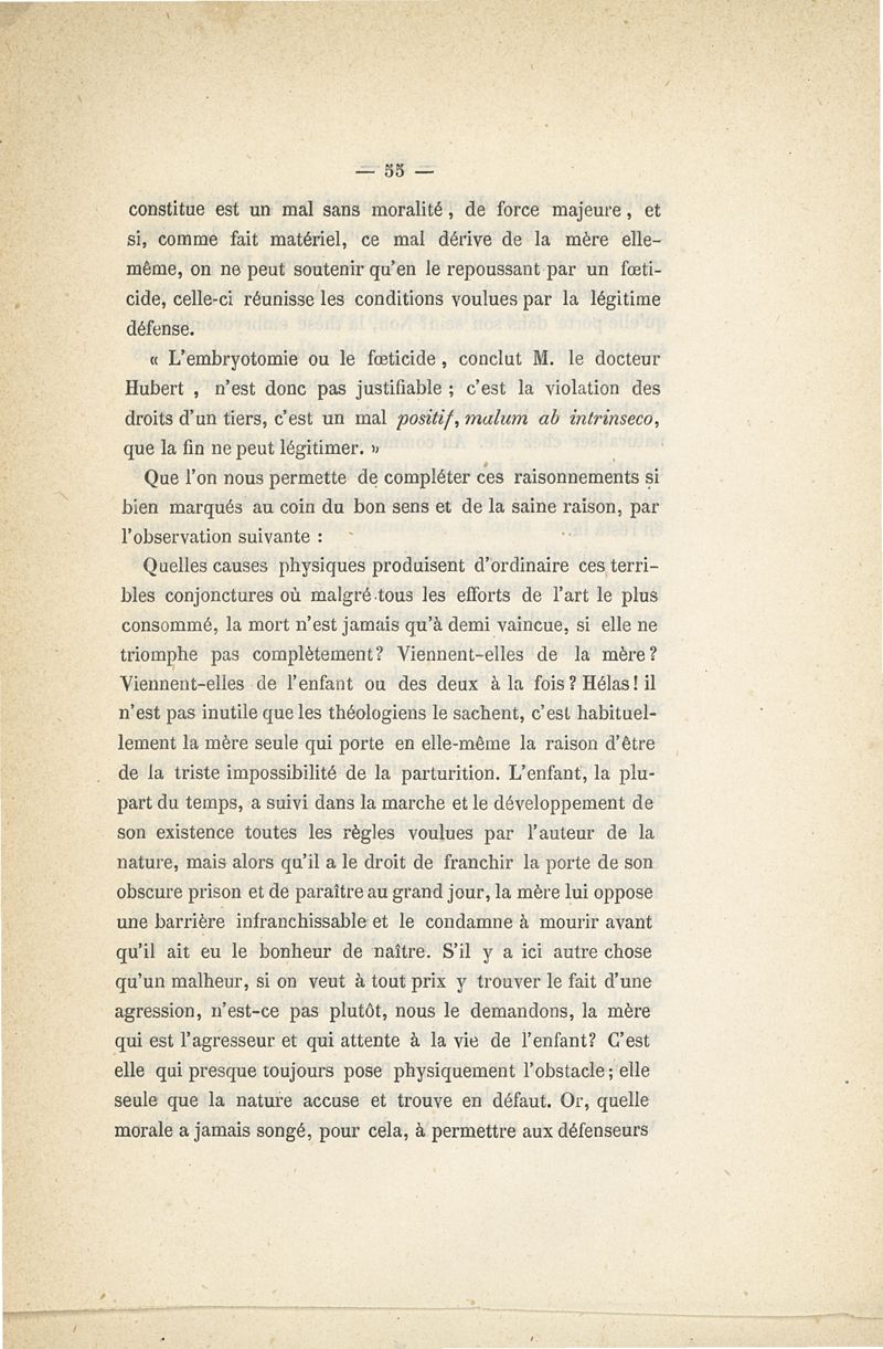 L'embryotomie au point de vue théologique et moral ou examen de la question s'il est permis de tuer l'enfant pour sauver la mère