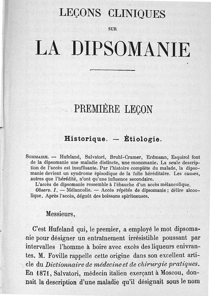 Leçons clinique sur les maladies mentales faites à l'asile clinique (Sainte-Anne)