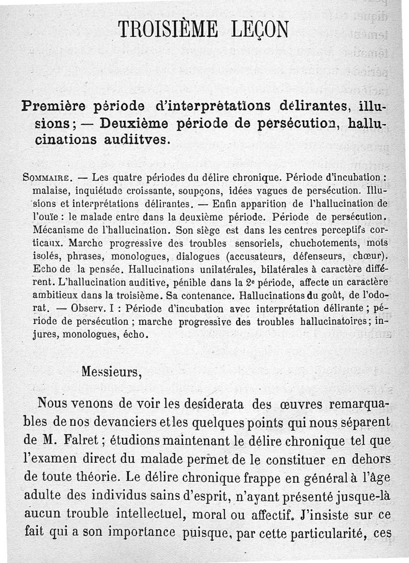 Leçons clinique sur les maladies mentales faites à l'asile clinique (Sainte-Anne)
