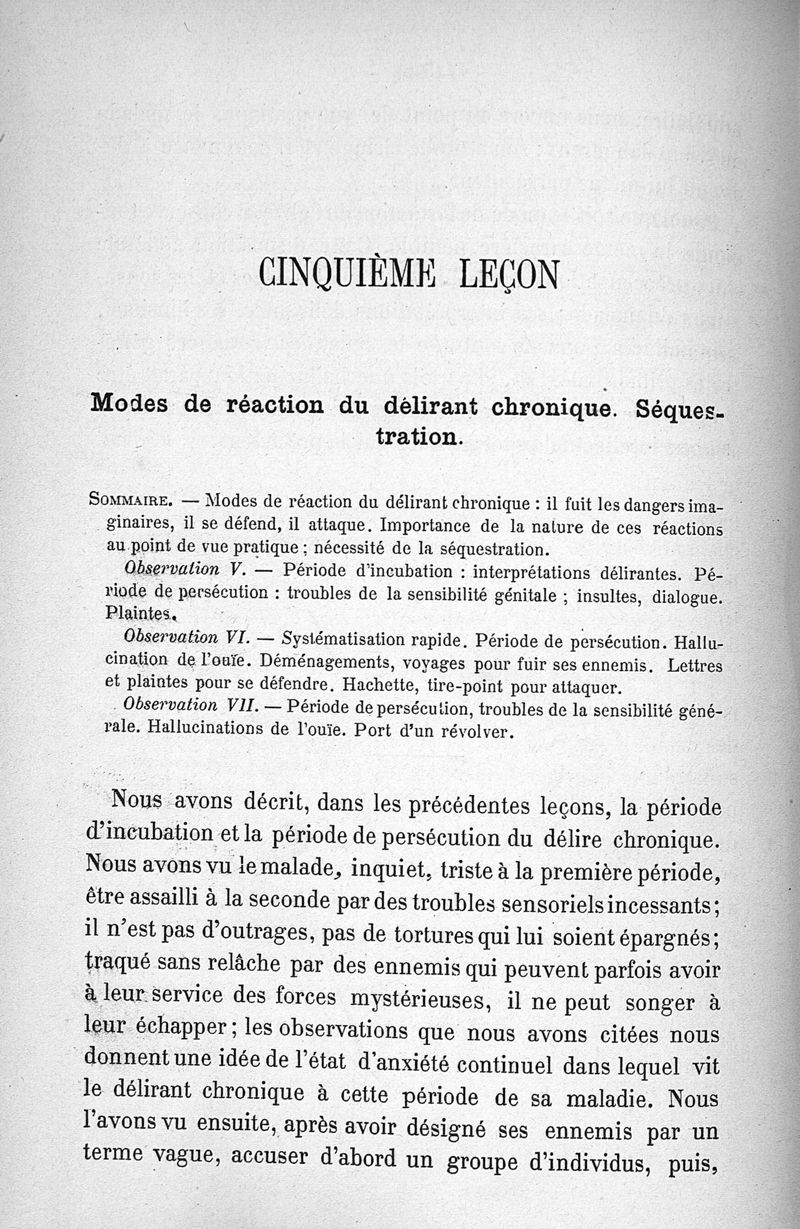 Leçons clinique sur les maladies mentales faites à l'asile clinique (Sainte-Anne)
