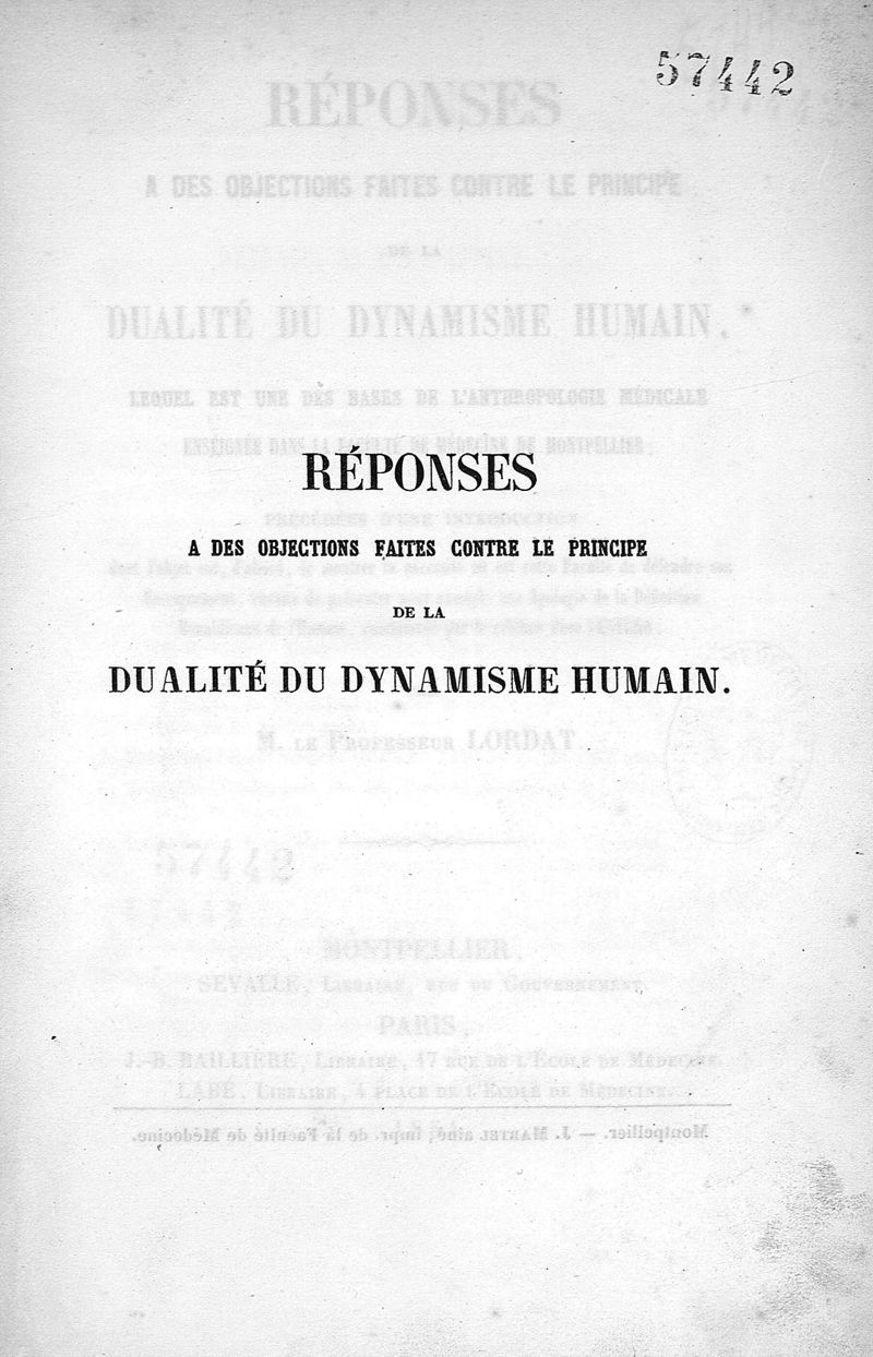 Réponses à des objections faites contre le principe de la dualité du dynamisme humain,..