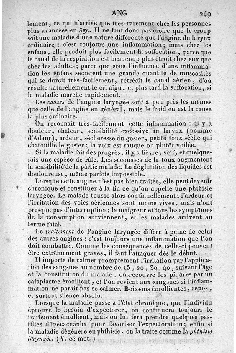 Dictionnaire de santé, ou Vocabulaire de médecine pratique : contenant par ordre alphabétique, un traité des médicamens, les principaux élémens d'hygiène, la description des maladies, leurs causes et le traitement qu'il convient de leur appliquer d'après les principes des doctrines médicales modernes