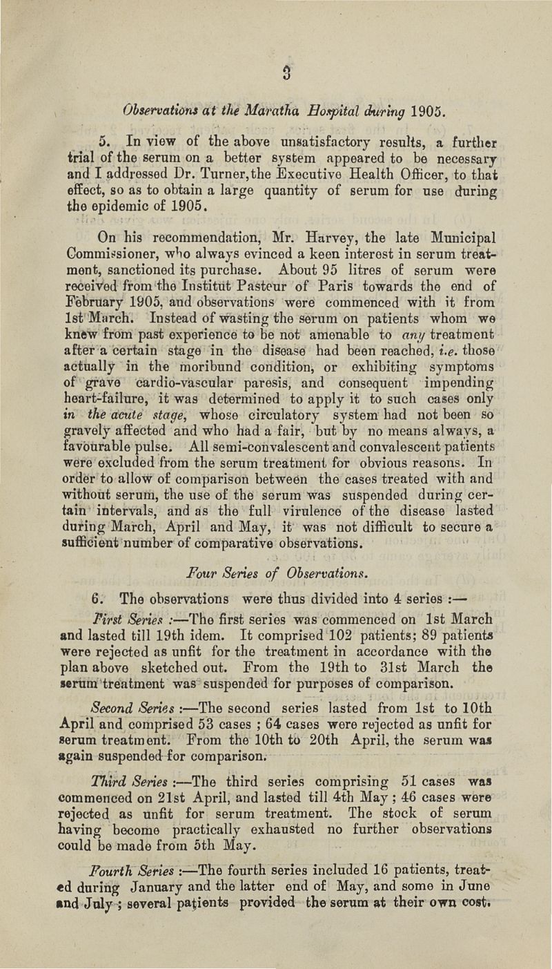 Report on the treatment of plague with Yersin - Roux serum at the Maratha hospital during 1905