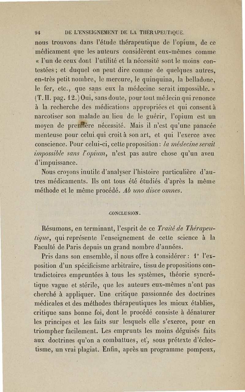 De l'enseignement de la thérapeutique à l'Ecole de Paris: examen du Traité de thérapeutique et de matière médicale de MM. Trousseau et Pidoux