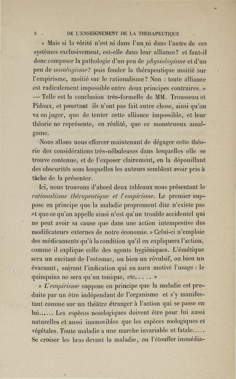 De l'enseignement de la thérapeutique à l'Ecole de Paris: examen du Traité de thérapeutique et de matière médicale de MM. Trousseau et Pidoux