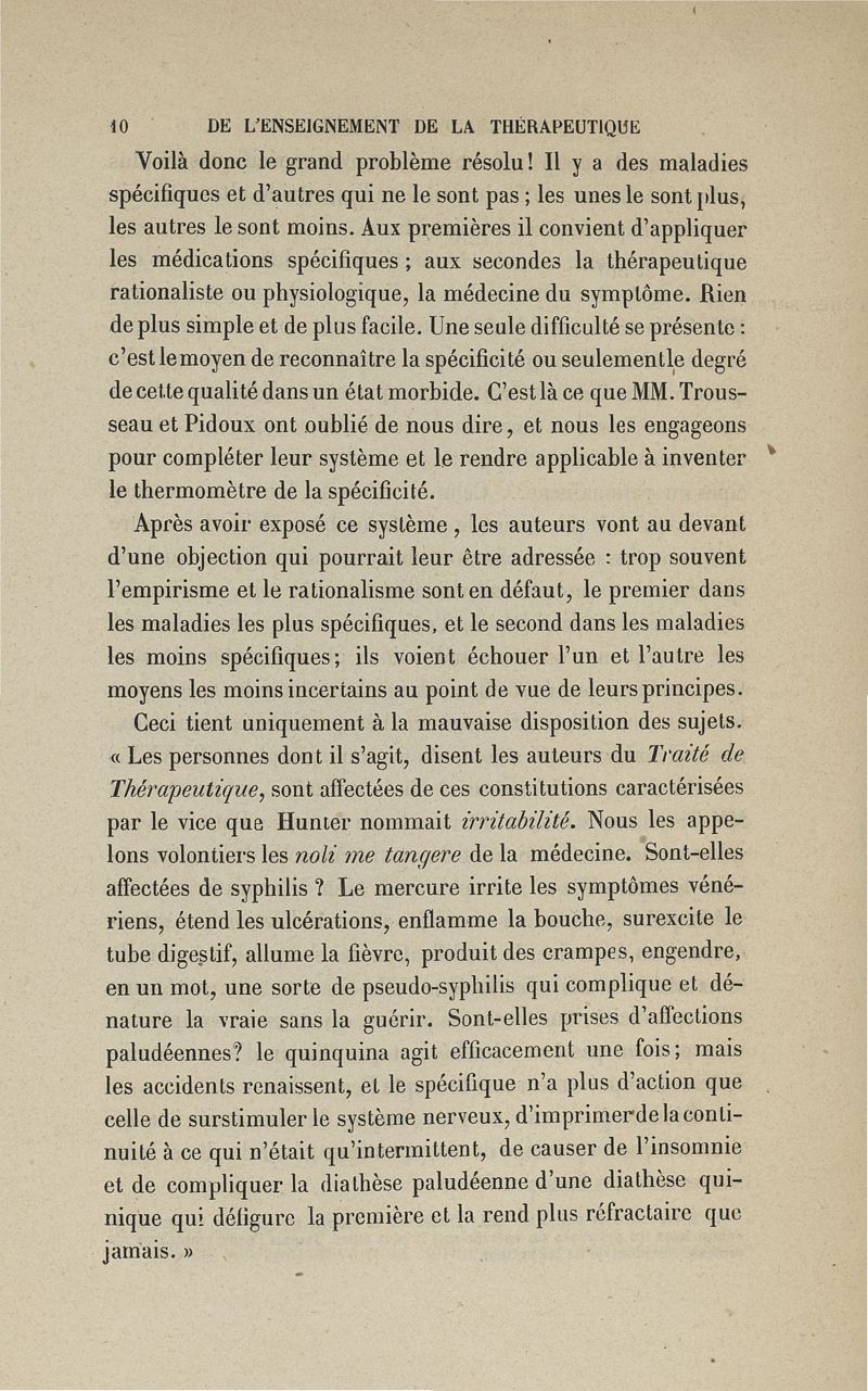 De l'enseignement de la thérapeutique à l'Ecole de Paris: examen du Traité de thérapeutique et de matière médicale de MM. Trousseau et Pidoux