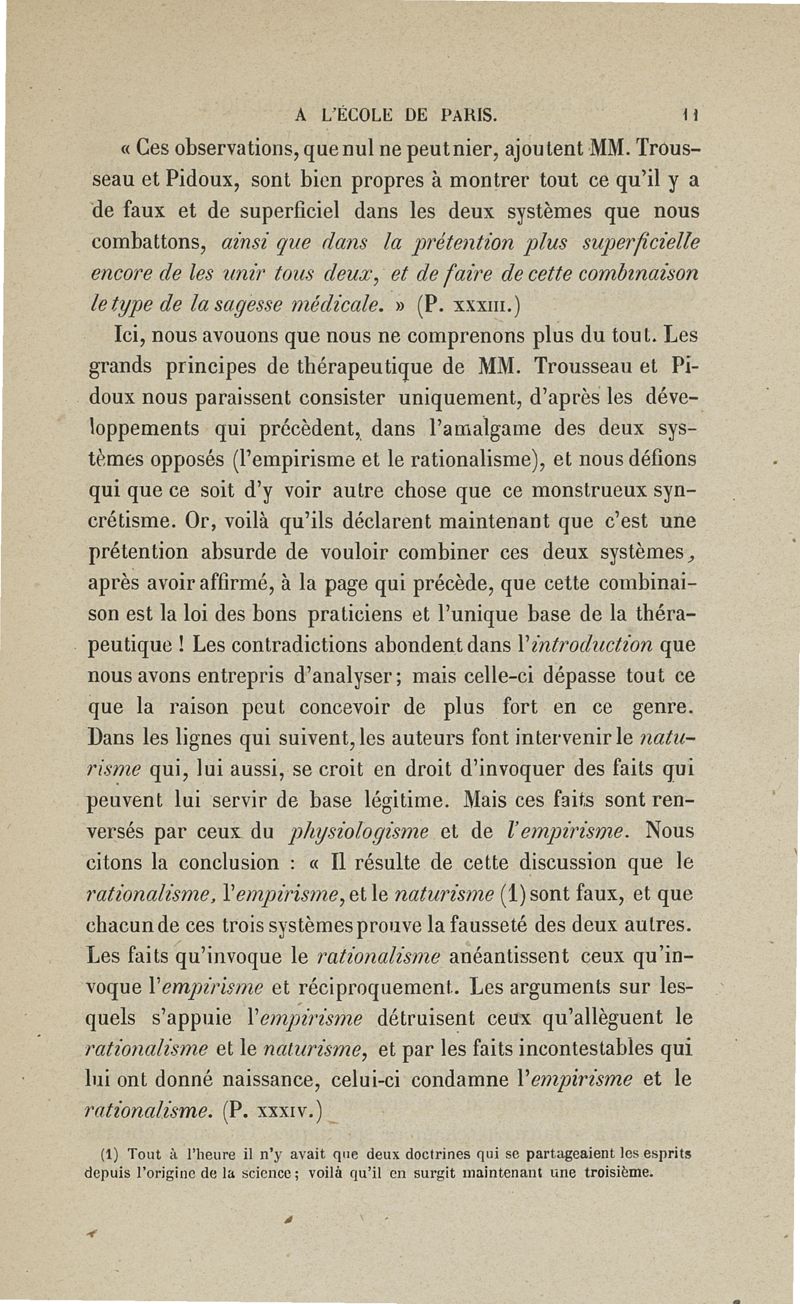 De l'enseignement de la thérapeutique à l'Ecole de Paris: examen du Traité de thérapeutique et de matière médicale de MM. Trousseau et Pidoux