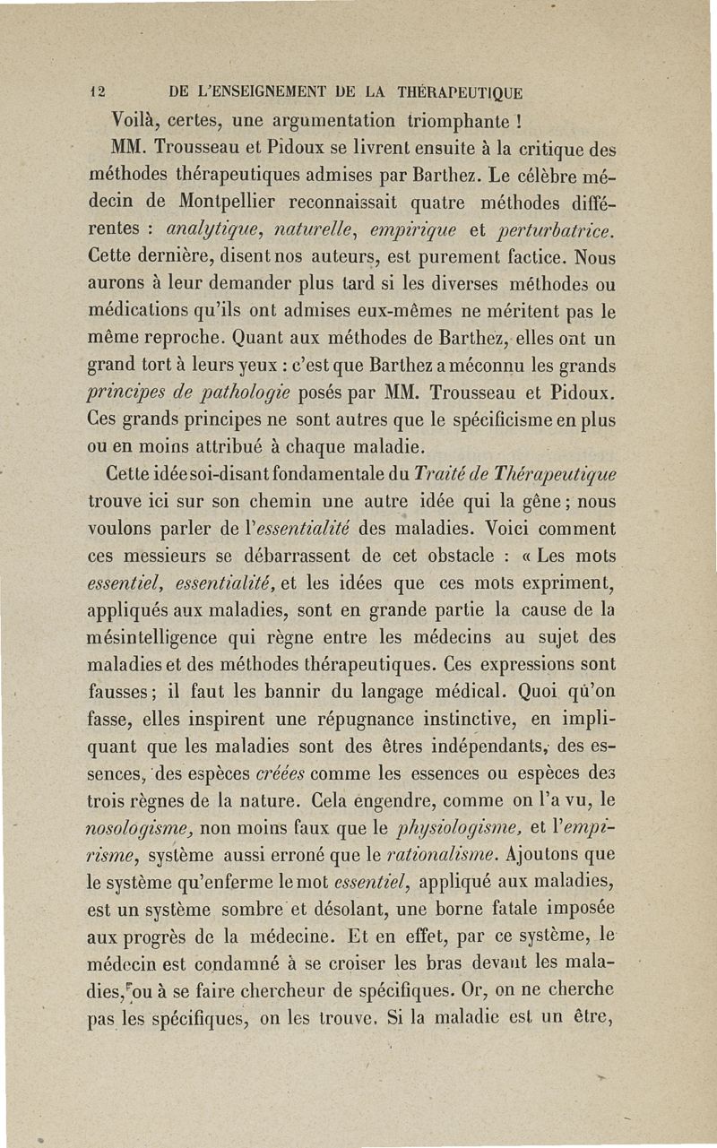 De l'enseignement de la thérapeutique à l'Ecole de Paris: examen du Traité de thérapeutique et de matière médicale de MM. Trousseau et Pidoux