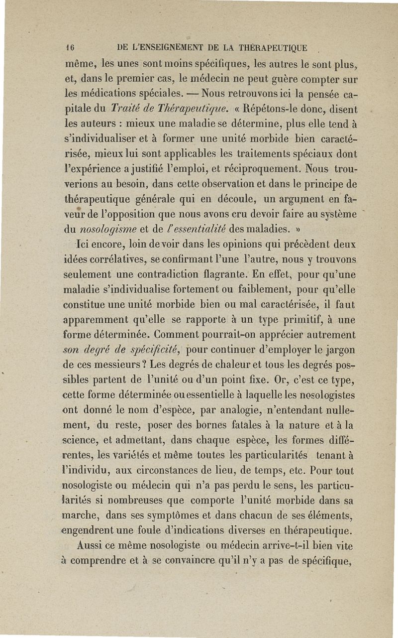 De l'enseignement de la thérapeutique à l'Ecole de Paris: examen du Traité de thérapeutique et de matière médicale de MM. Trousseau et Pidoux