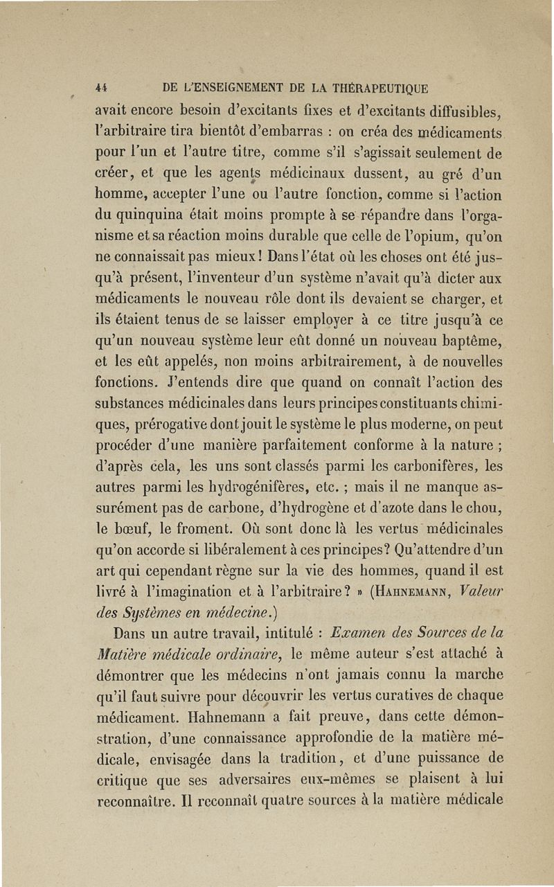 De l'enseignement de la thérapeutique à l'Ecole de Paris: examen du Traité de thérapeutique et de matière médicale de MM. Trousseau et Pidoux