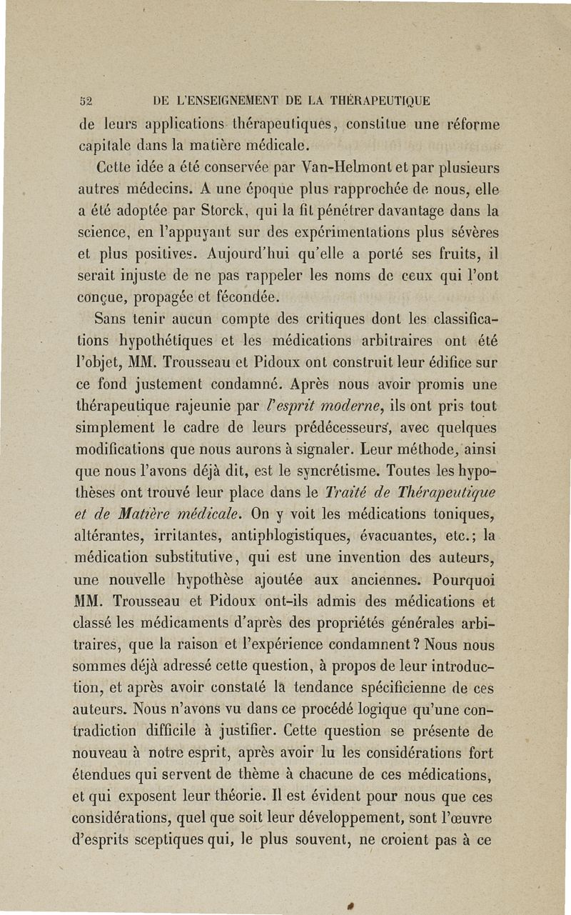De l'enseignement de la thérapeutique à l'Ecole de Paris: examen du Traité de thérapeutique et de matière médicale de MM. Trousseau et Pidoux