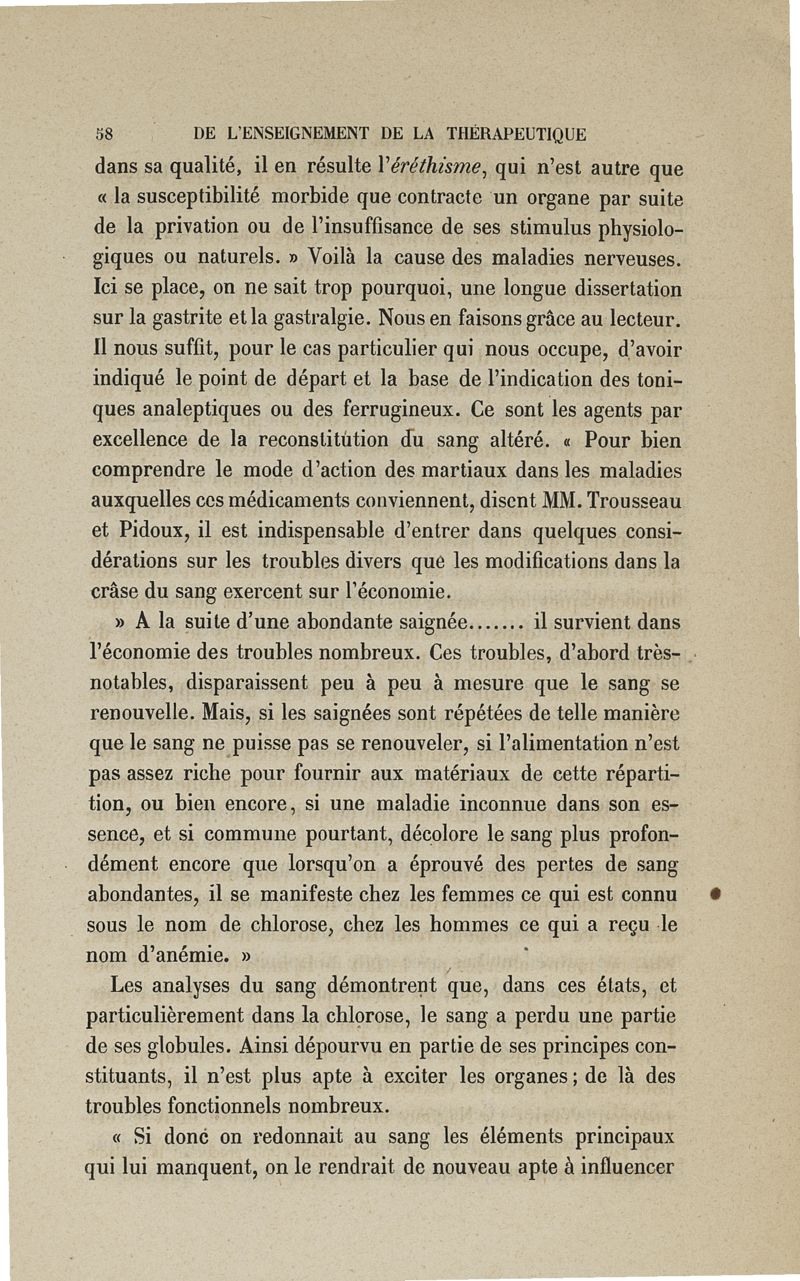 De l'enseignement de la thérapeutique à l'Ecole de Paris: examen du Traité de thérapeutique et de matière médicale de MM. Trousseau et Pidoux