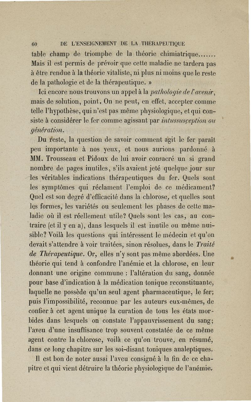 De l'enseignement de la thérapeutique à l'Ecole de Paris: examen du Traité de thérapeutique et de matière médicale de MM. Trousseau et Pidoux