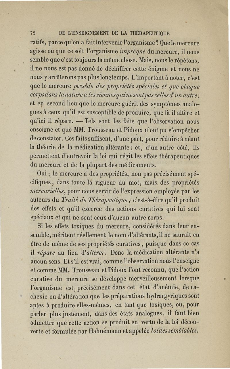De l'enseignement de la thérapeutique à l'Ecole de Paris: examen du Traité de thérapeutique et de matière médicale de MM. Trousseau et Pidoux