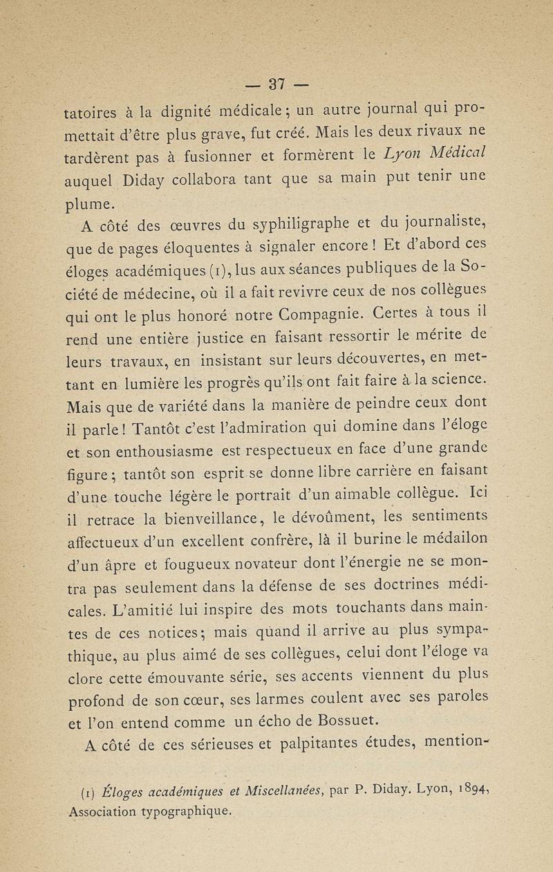 Notice sur la vie et les travaux du Dr Paul Diday, ancien chirurgien-major de l'Antiquaille (hôpital des vénériens de Lyon)