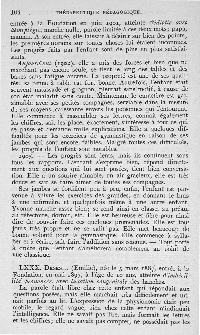 Traitement médico-pédagogique des différentes formes de l'idiotie