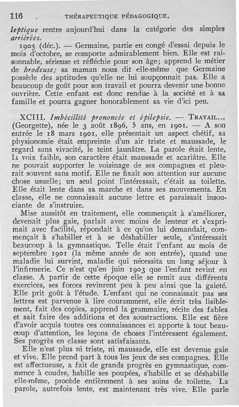 Traitement médico-pédagogique des différentes formes de l'idiotie