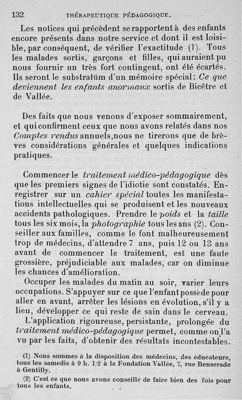 Traitement médico-pédagogique des différentes formes de l'idiotie