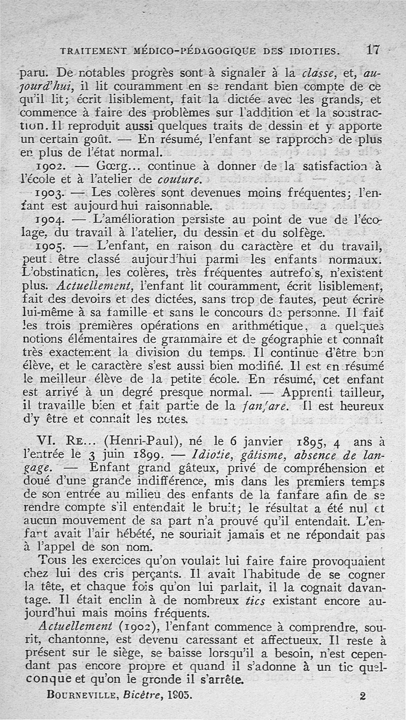 Traitement médico-pédagogique des différentes formes de l'idiotie