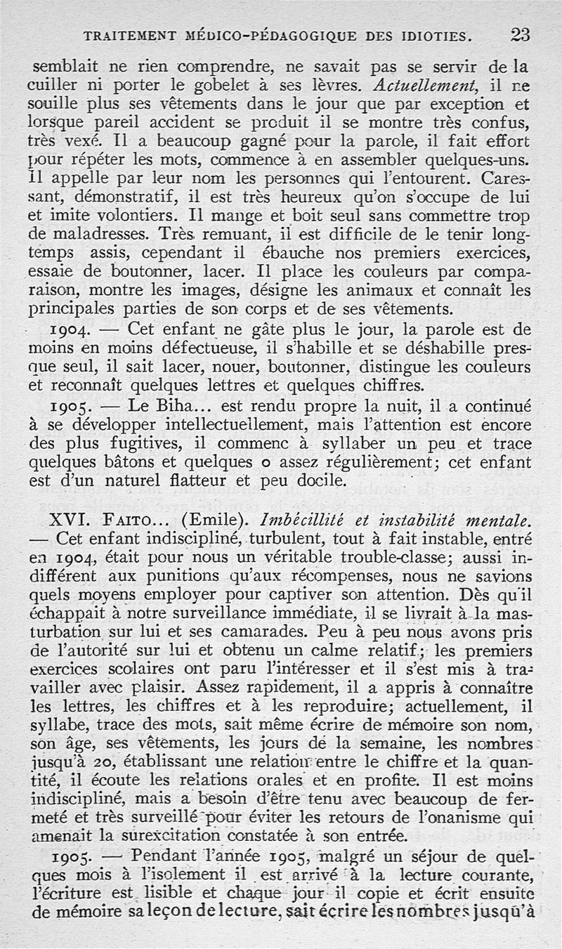 Traitement médico-pédagogique des différentes formes de l'idiotie
