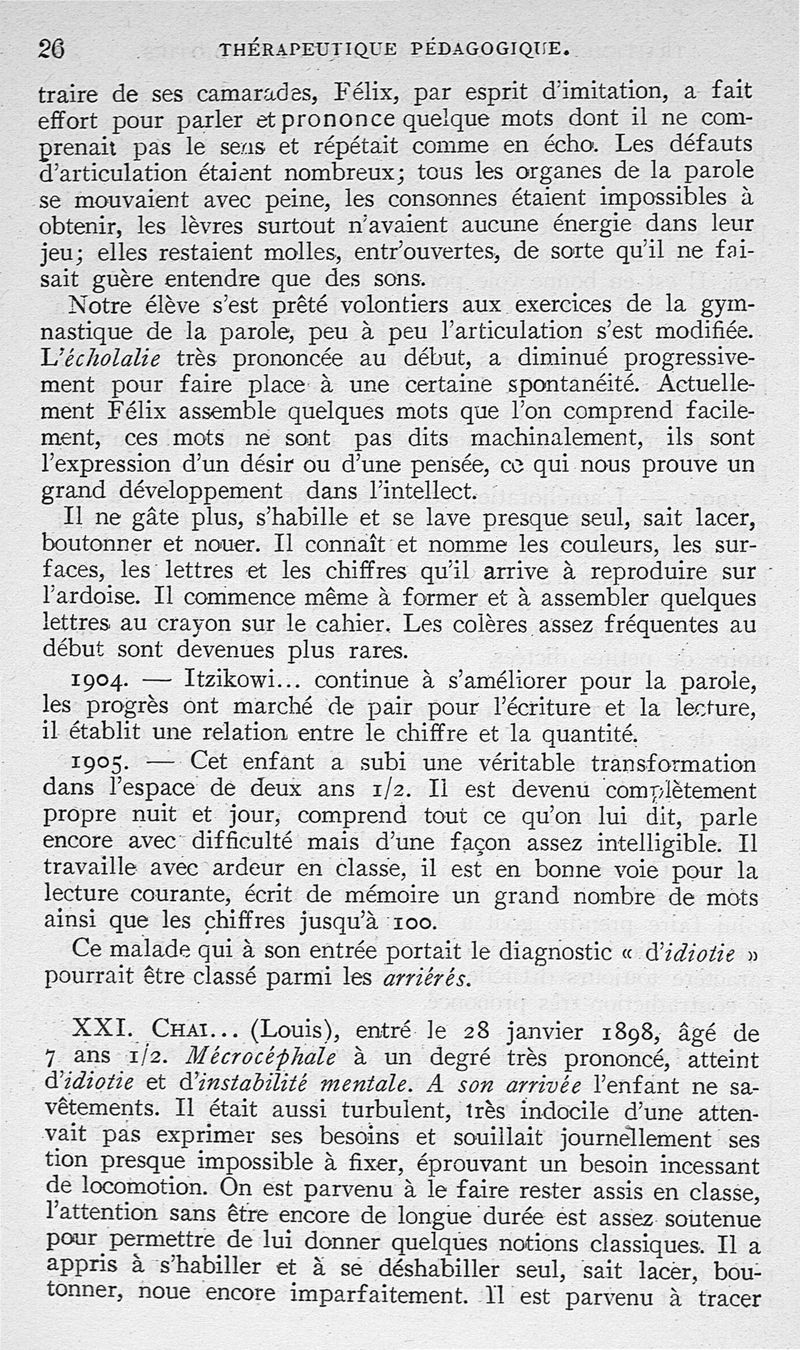 Traitement médico-pédagogique des différentes formes de l'idiotie