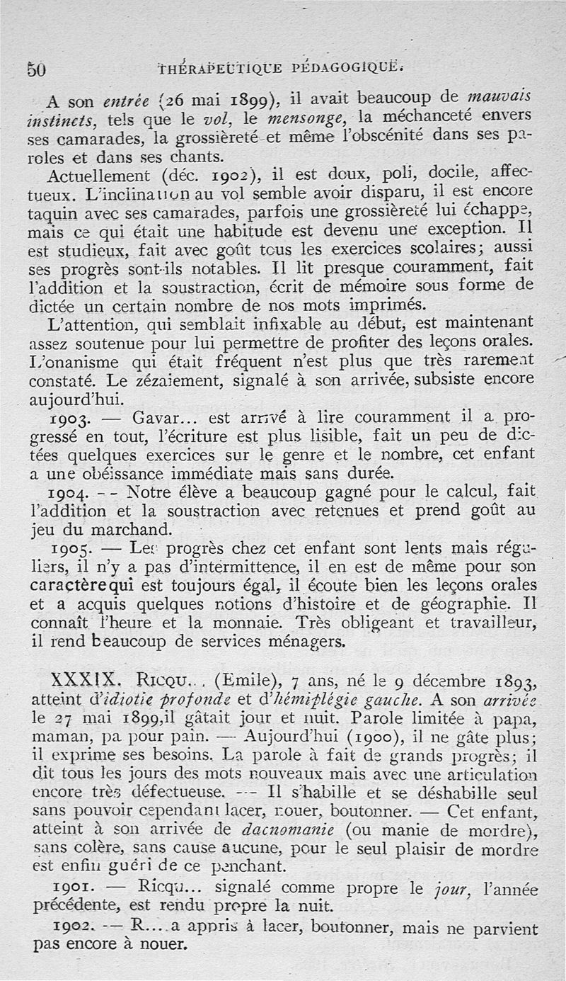 Traitement médico-pédagogique des différentes formes de l'idiotie