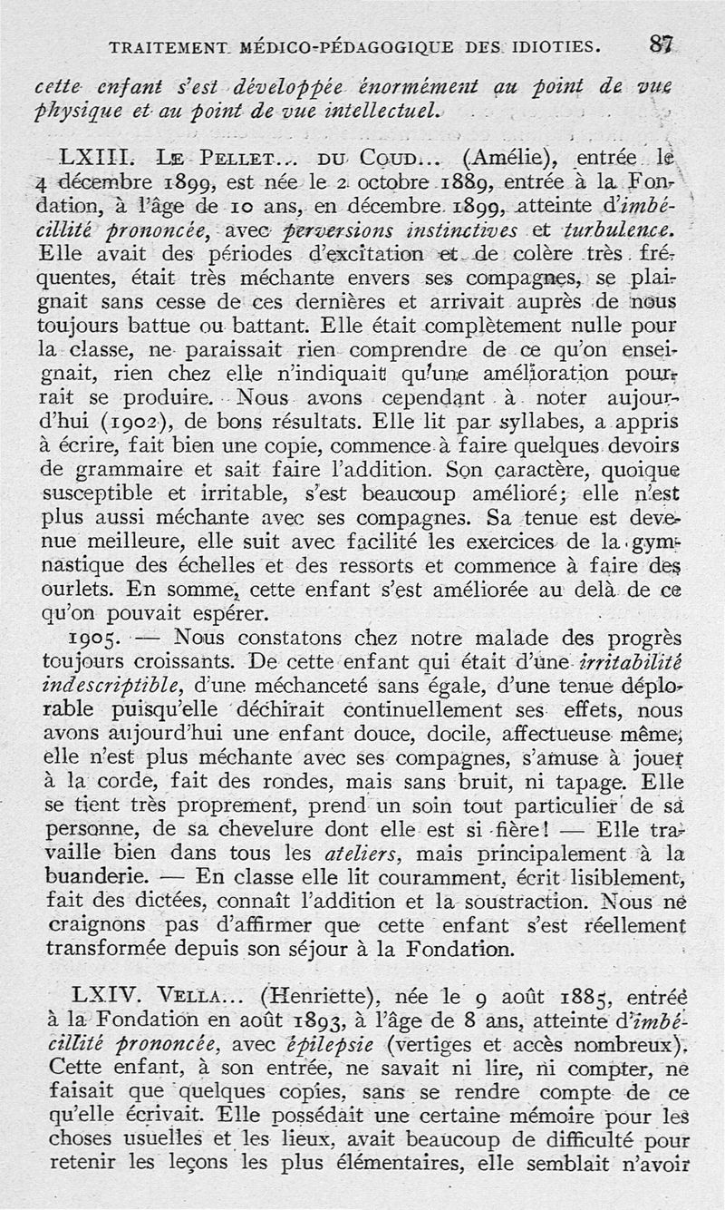 Traitement médico-pédagogique des différentes formes de l'idiotie