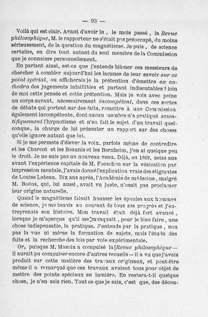 L'hypnotisme et la liberté des représentations publiques. Lettres à M. le Professeur Thiriar..., suivies de l'examen du rapport présenté par M. Masoin à l'Académie de médecine
