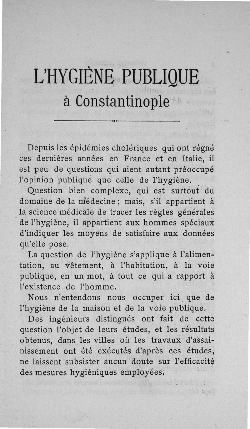L'Hygiène publique à Constantinople : assainissement des habitations et de la voie publique