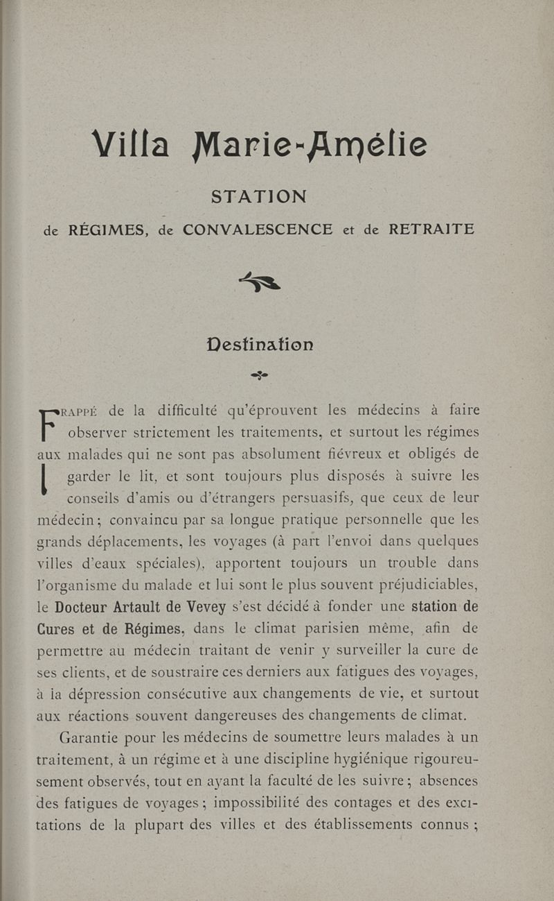 Villa Marie-Amélie. Station de cures, régimes, convalescence et de retraite