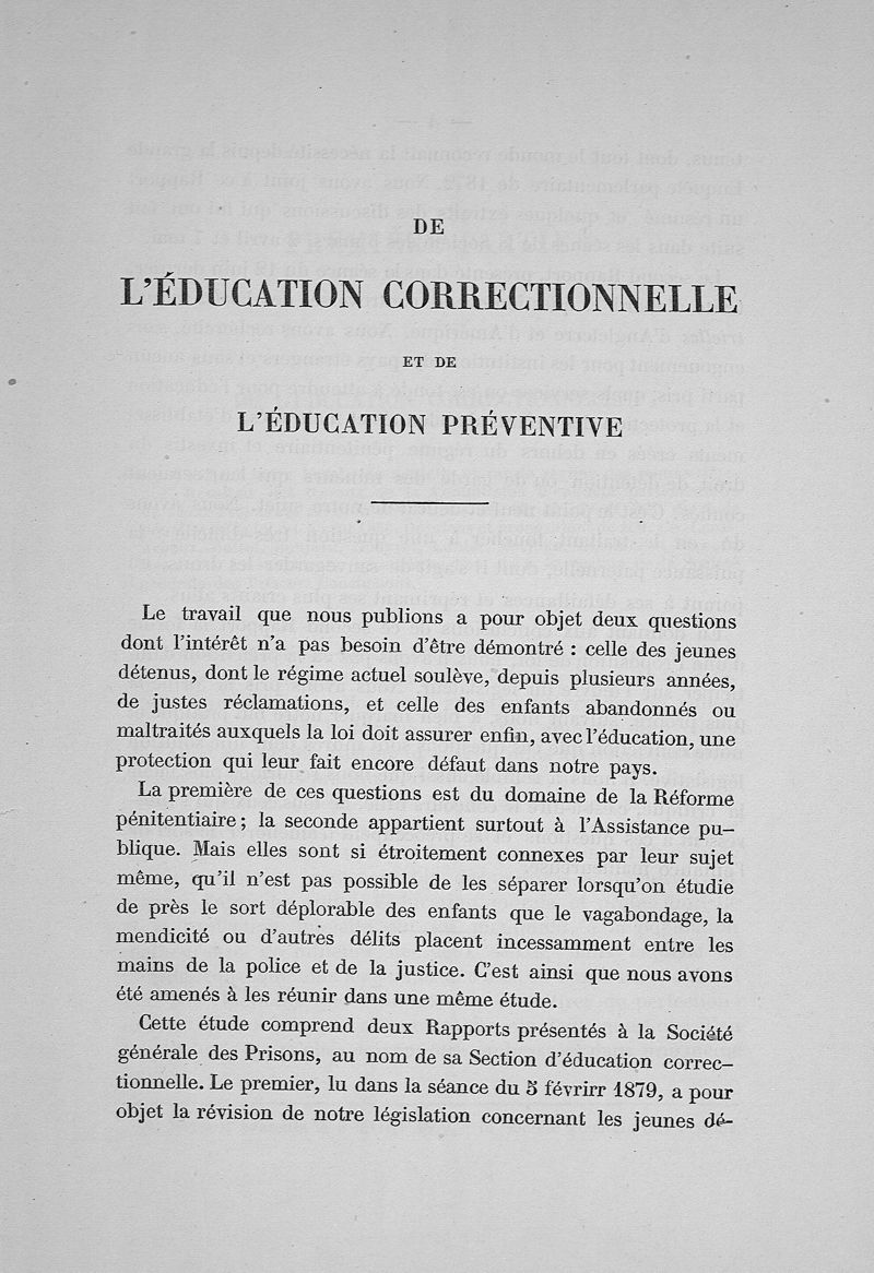 De l'éducation correctionnelle et de l'éducation préventive. Étude sur les modifications à apporter à notre législation concernant les jeunes détenus et les mineurs abandonnés ou maltraités