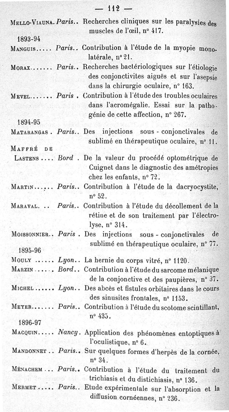Catalogue général des thèses françaises d'ophtalmologie, publié sous la direction du Dr H. Truc, par A. Jalabert et P. Chavernac ; 2è éd.