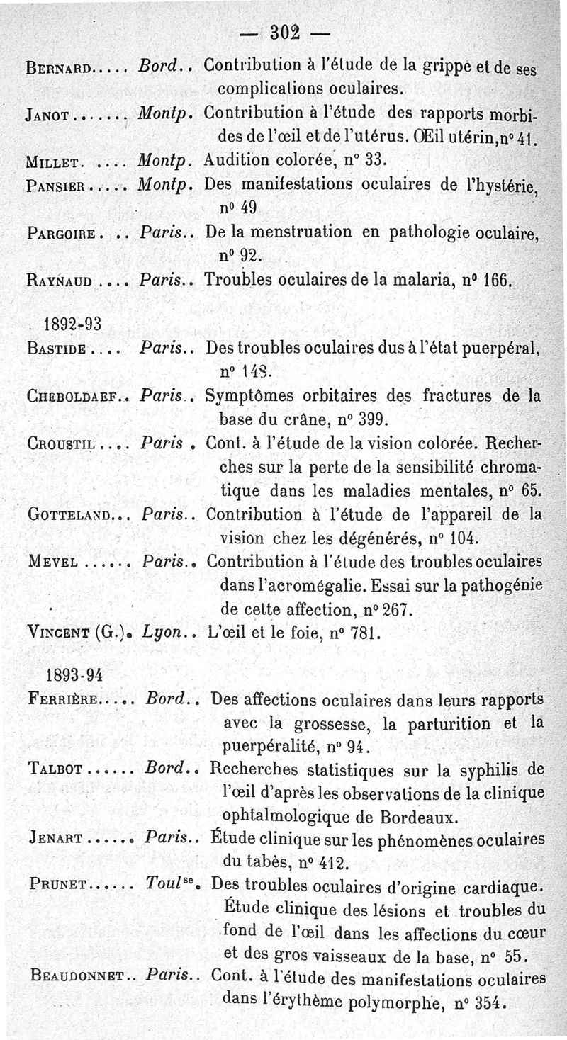 Catalogue général des thèses françaises d'ophtalmologie, publié sous la direction du Dr H. Truc, par A. Jalabert et P. Chavernac ; 2è éd.