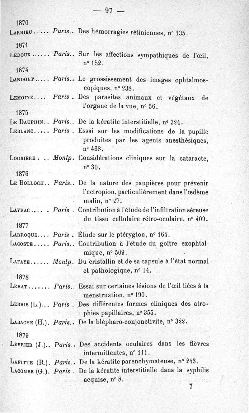 Catalogue général des thèses françaises d'ophtalmologie, publié sous la direction du Dr H. Truc, par A. Jalabert et P. Chavernac ; 2è éd.