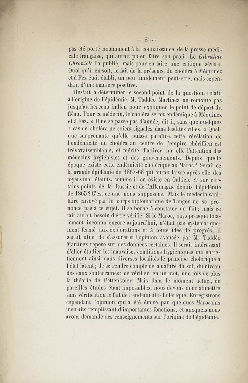 Une épidémie de choléra au Maroc en 1878