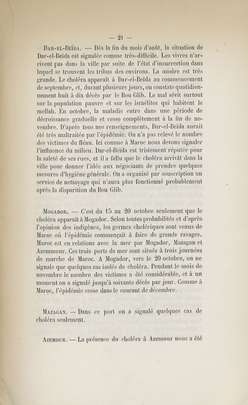Une épidémie de choléra au Maroc en 1878