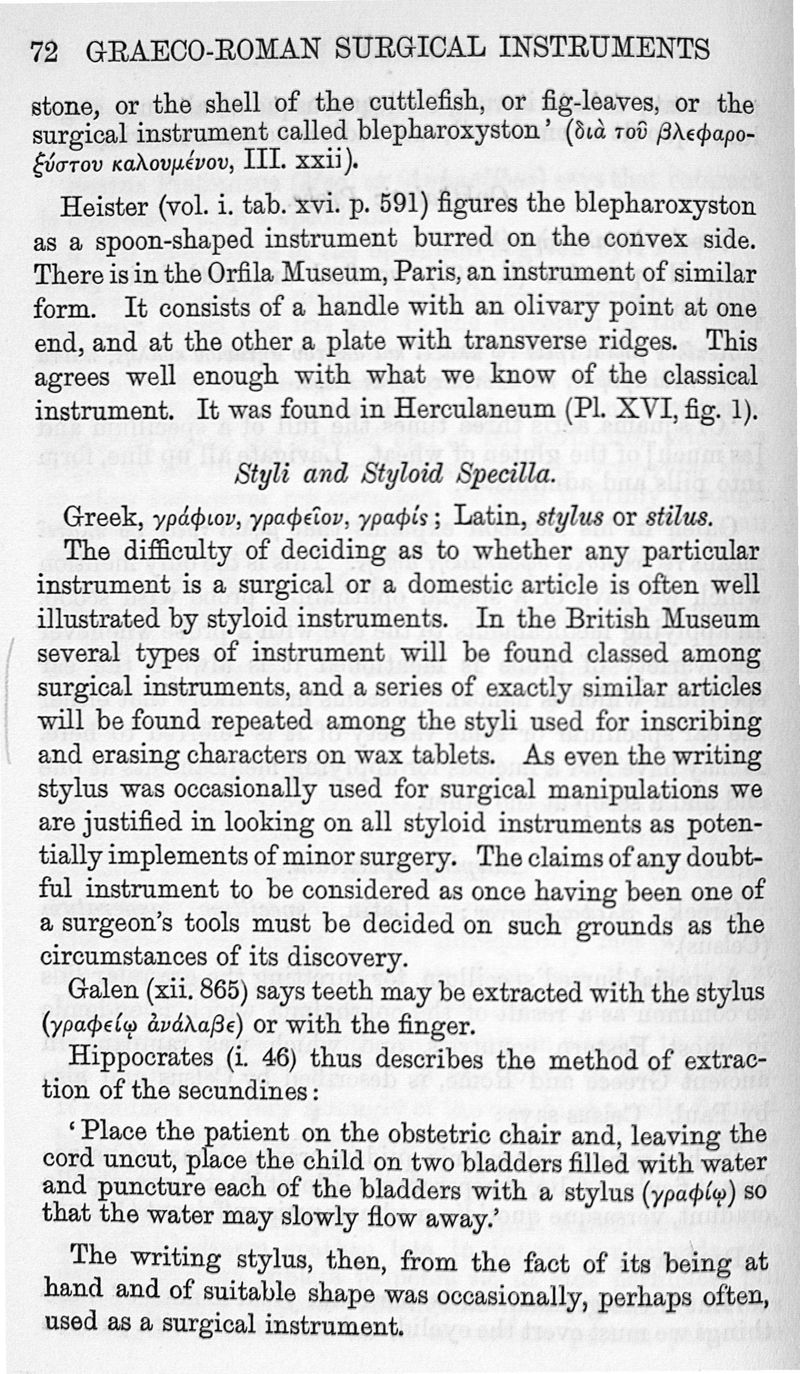 Surgical instruments in greek and roman times