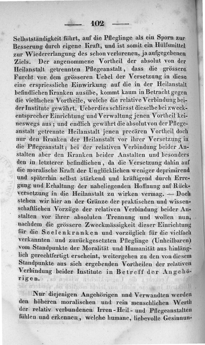 Ueber die relative Verbindung der Irren-Heil und Pflege-Anstalten : in historich-kritischer, so wie in moralischer, wissenschaftlicher und administrativer Beziehung