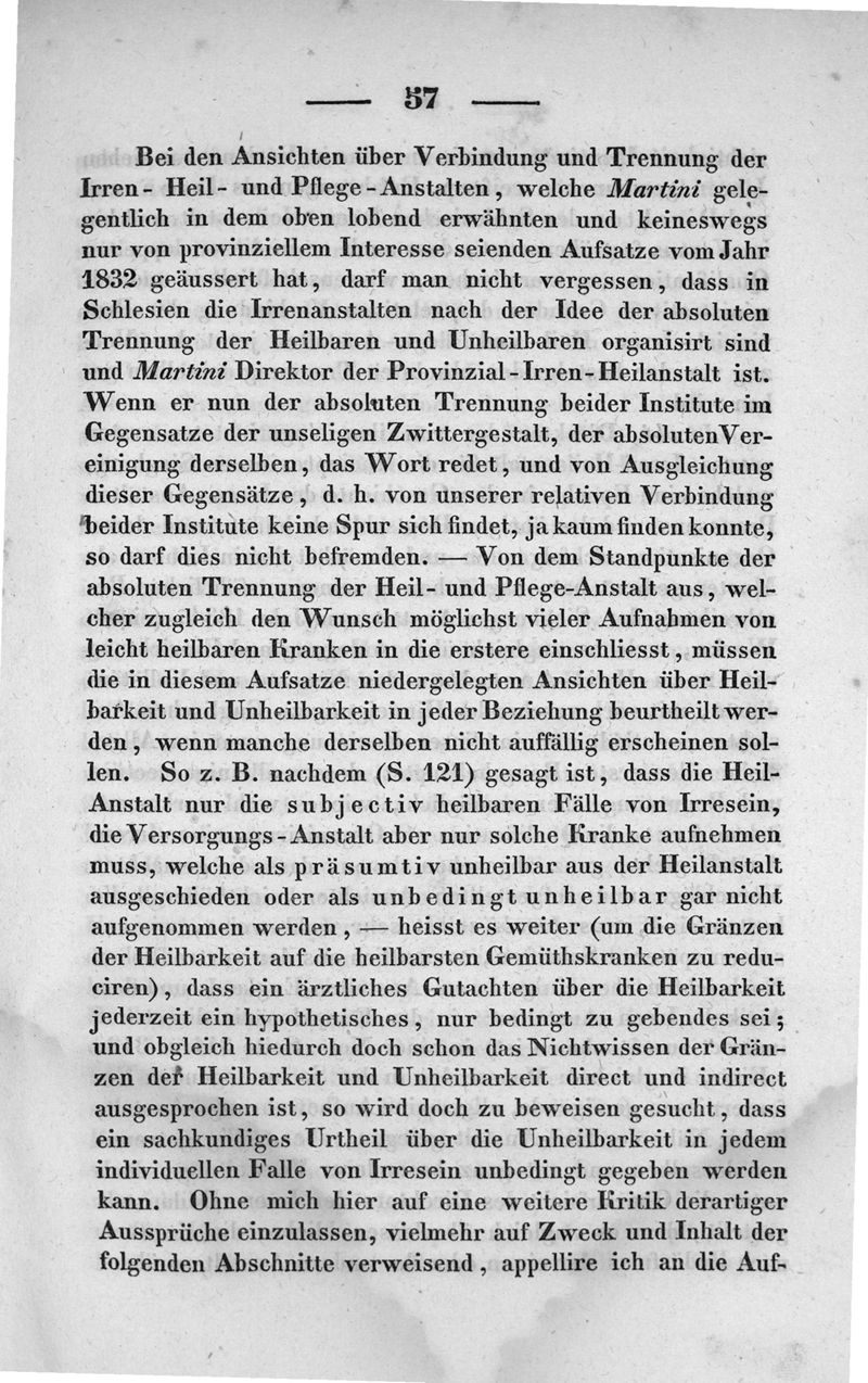 Ueber die relative Verbindung der Irren-Heil und Pflege-Anstalten : in historich-kritischer, so wie in moralischer, wissenschaftlicher und administrativer Beziehung