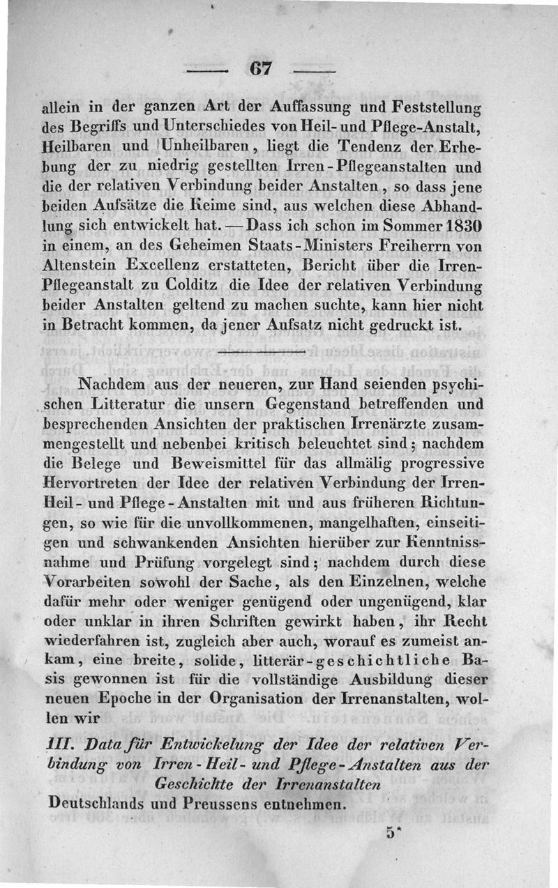 Ueber die relative Verbindung der Irren-Heil und Pflege-Anstalten : in historich-kritischer, so wie in moralischer, wissenschaftlicher und administrativer Beziehung