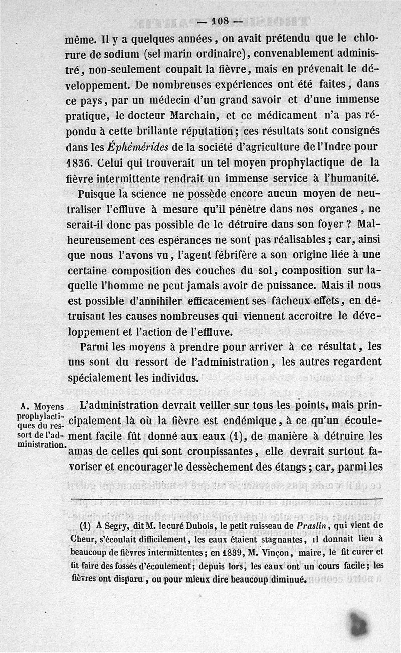 Etudes sur la fièvre intermittente dans le département de l'Indre