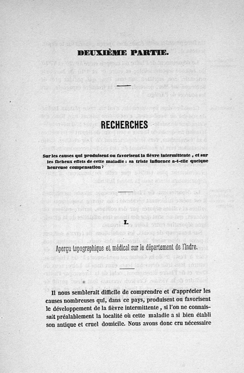 Etudes sur la fièvre intermittente dans le département de l'Indre