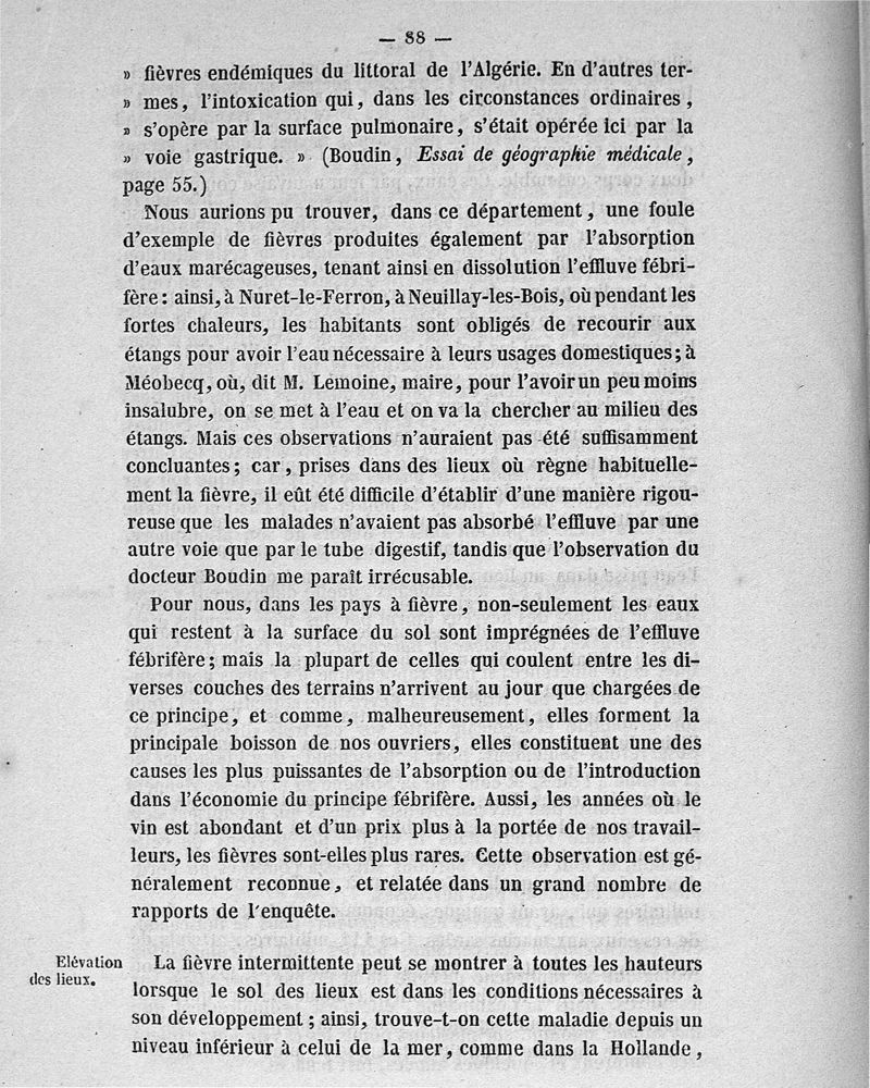 Etudes sur la fièvre intermittente dans le département de l'Indre