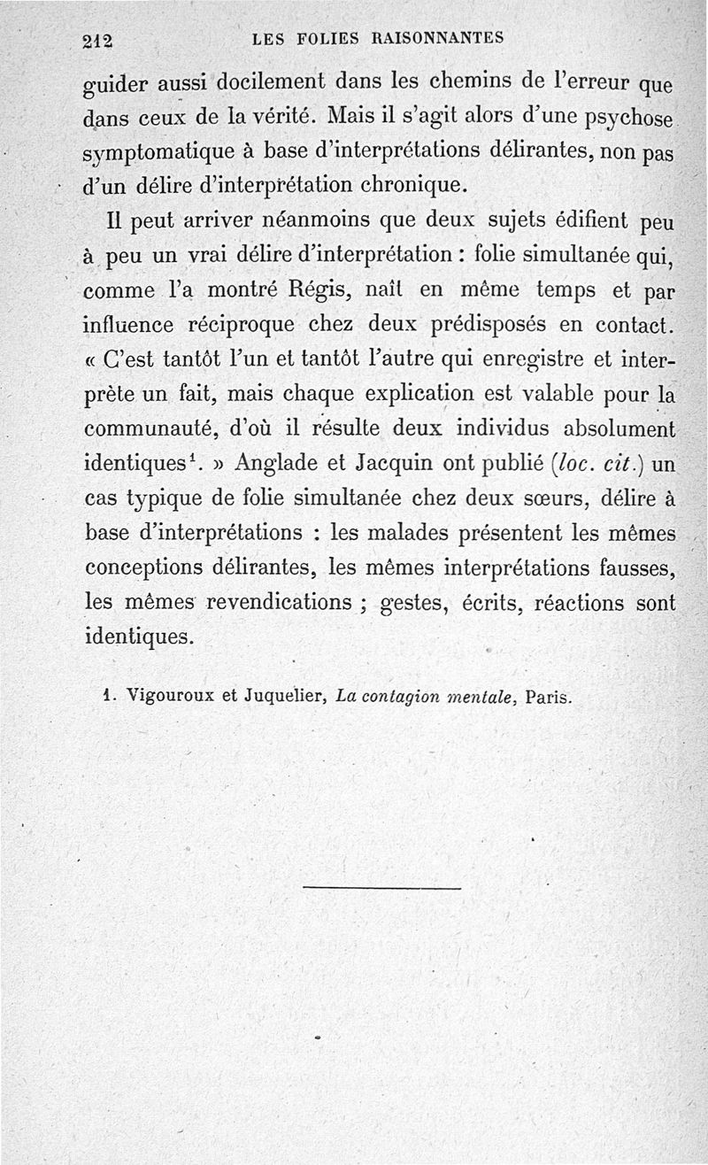 Les Folies raisonnantes, le délire d'interprétation