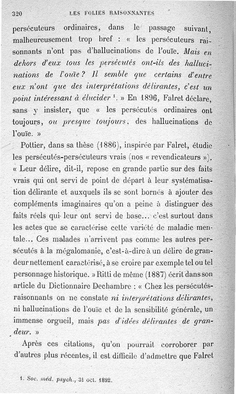 Les Folies raisonnantes, le délire d'interprétation