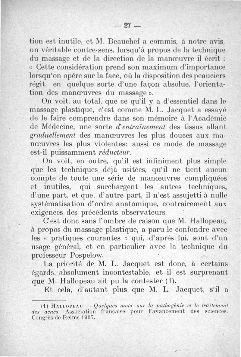 Le massage plastique dans les dermatoses de la face : ses indications, ses résultats. Deuxième édition, revue et corrigée.