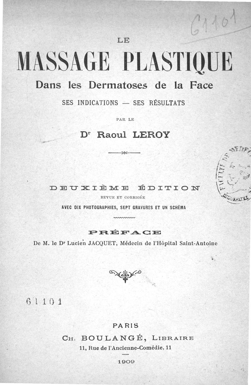 Le massage plastique dans les dermatoses de la face : ses indications, ses résultats. Deuxième édition, revue et corrigée.