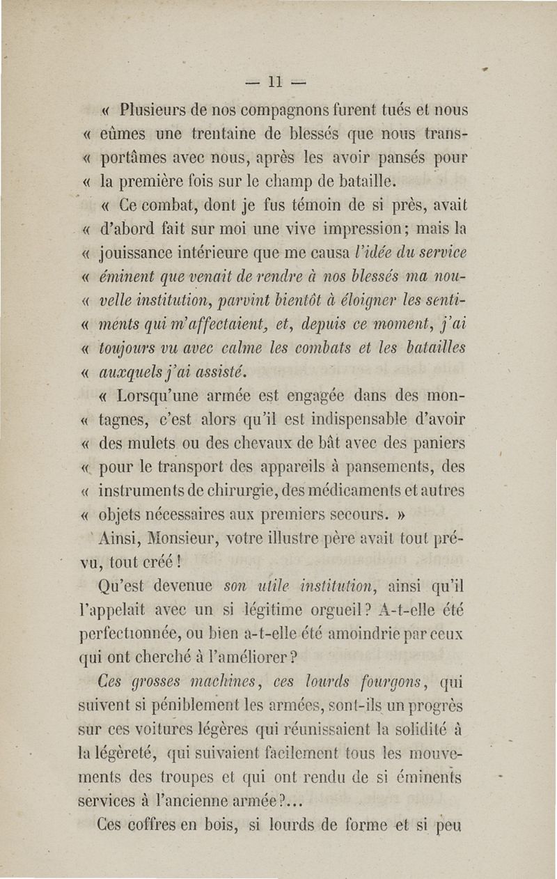Notice sur le perfectionnement du matériel des ambulances volantes