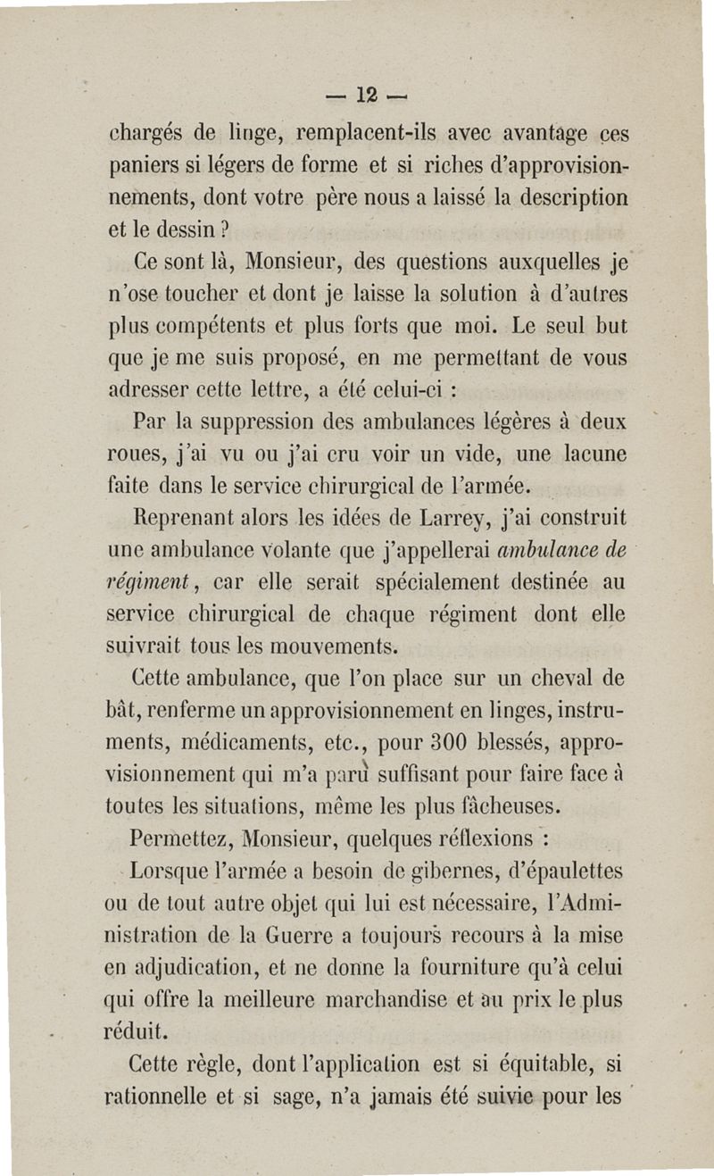 Notice sur le perfectionnement du matériel des ambulances volantes