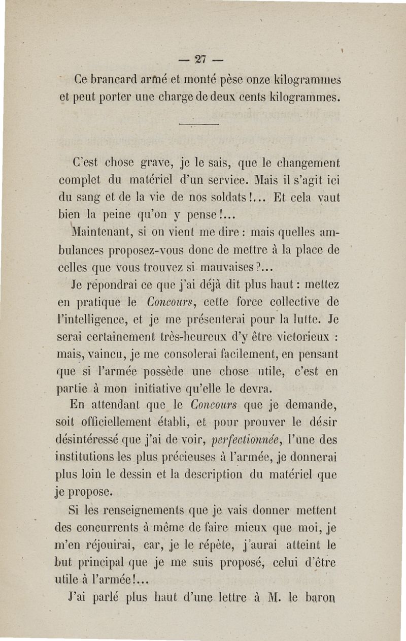 Notice sur le perfectionnement du matériel des ambulances volantes